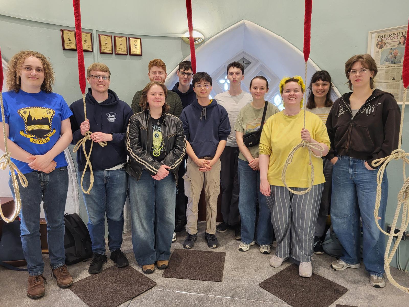 After both Friday and Sunday sessions we almost never miss a cheeky visit to the pub, especially our local - ‘The Brown Bear’, which helpfully sits right across from St Marie’s. We also have other non-ringing socials planned throughout the year, ranging from board game socials, rock climbing, pub crawls, friendship bracelet making and more! This is done alongside our more ringing focused activities such as tower outings, NUA, quarter peal and peal tours. In 2024 we even did a mini tour of Ireland and Northern Ireland, scoring a peal and 6 quarter peals in total!